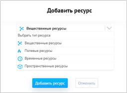 В верхней части окна присутствуют две кнопки: «+ Ресурс» и «Менеджер ресурсов». При нажатии на кнопку «Ресурсы» открывается окно «Добавить ресурс».