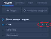 Чтобы отредактировать название ресурса или удалить его, необходимо использовать кнопки, расположенные в правой части его ячейки.