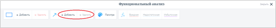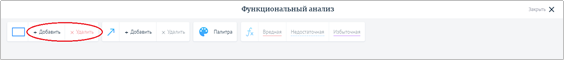 Над рабочим полем расположена шапка с управляющими кнопками. Чтобы добавить на рабочее поле или удалить с него блоки, нужно пользоваться кнопками «Добавить» и «Удалить», расположенными рядом с обозначением блока.