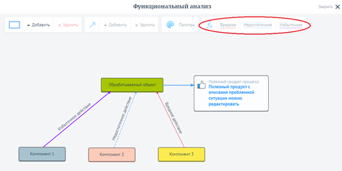 Кроме того, у нас есть возможность преобразовать вид стрелок, обозначающих действия, так, чтобы они отражали нашу оценку этих действий: полезное адекватное, полезное недостаточное, полезное избыточное и вредное.