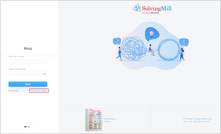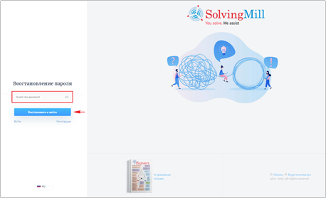 Чтобы восстановить пароль от аккаунта пользователя Solving Mill, необходимо: