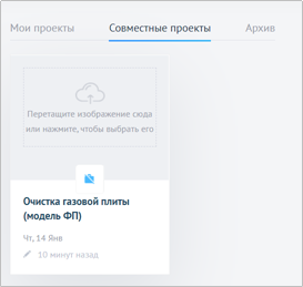 При наведении курсора мыши на карточку совместного проекта и нажав кнопку