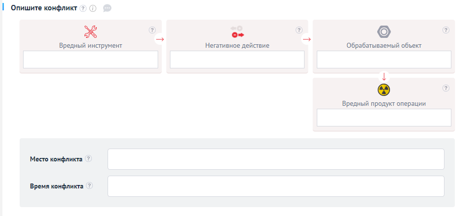 Конфликт в машине проявляется через возникновение вредного продукта операции.