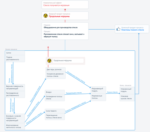Морщины не могут возникнуть, когда стекло окончательно отвердело. Они не могут возникнуть и в жидком стекле. Соответственно, нужно рассматривать ту часть процесса, когда стекло находится в переходном состоянии. Это этап, когда полоса стекла движется вниз, ускоряемая роликами, и постепенно твердеет.