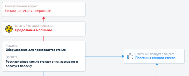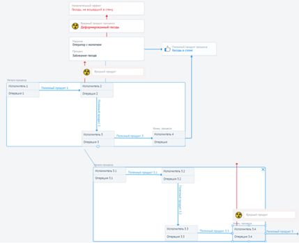 Стрелки вредных продуктов всегда вертикальны и выходят за границы уровня, поскольку в данном анализе нужно акцентировать внимание на влиянии вредного продукта на появление нежелательного эффекта, то есть на внешнее проявление вредного продукта.