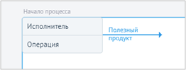 Заготовка содержит блоки начальной и финальной операций производственного процесса. В верхней части блока каждой операции записывается исполнитель операции, а в нижней – выполняемое исполнителем действие. Над стрелкой записывается название полезного продукта, который получается в результате выполнения операции.