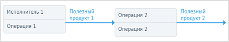 Операции производственного процесса связаны посредством полезного продукта. Выходящий продукт предыдущей операции является входящим продуктом для следующей.