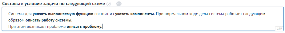 Нужно сформулировать условие задачи по шаблону, представленному в ячейке.
