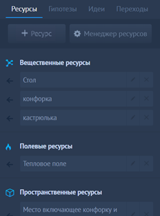 Ресурсы — это всё то, что вы можете использовать для решения задачи, исходя из накопившейся информации о ней: вещества, поля, время, пространство и т.п.