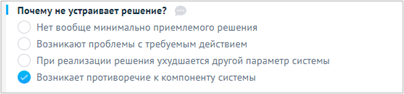 В этом случае нужно активировать ответ «Возникает противоречие к компоненту системы».