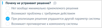 Согласно темплейту Solving Mill нужно определить, к какому атрибуту системы относятся противоречивые требования. После этого нужно активировать соответствующий вариант переключателя.
