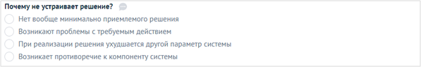 Для этого программа Solving Mill попросит пользователя выбрать из списка причину, которая указывает, почему предложенное решение не устраивает пользователя.